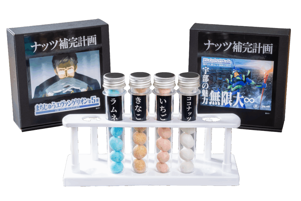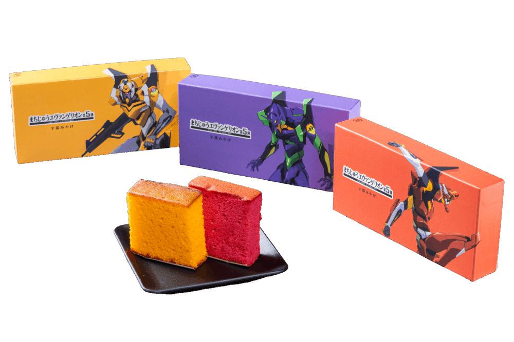 ・まちじゅうエヴァンゲリオン第5弾の開催を記念してラズベリーカステーラ・みかんカステーラ2種類のお味とお色をお楽しみいただけます。