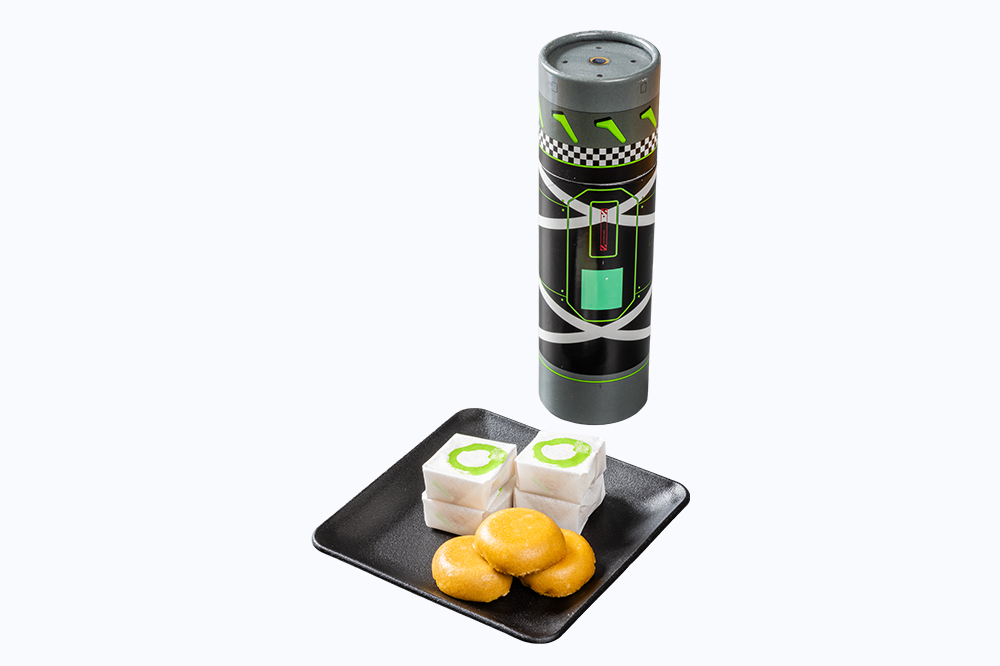 ・零号機をイメージ(特に赤い目1つの特徴)し、当店人気商品焼き小籠包で表現しました。手作り生地、新鮮な具材を包み、蒸し焼きで上側はもちもち、下側はカリカリで一度に2種類の食感を楽しめる旨味濃厚のコラーゲンスープたっぷりが特徴です。
