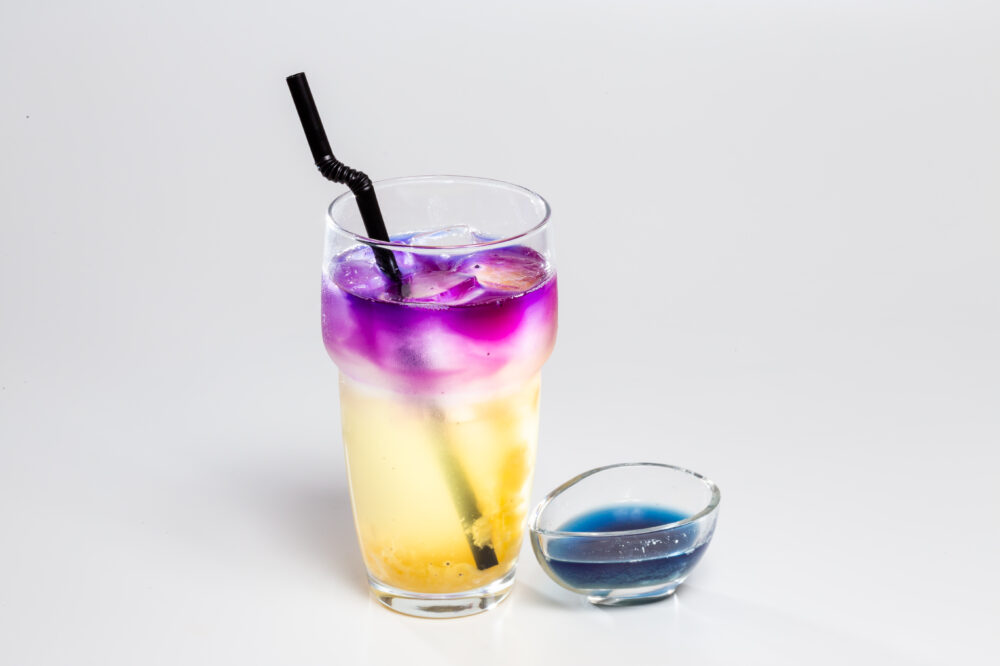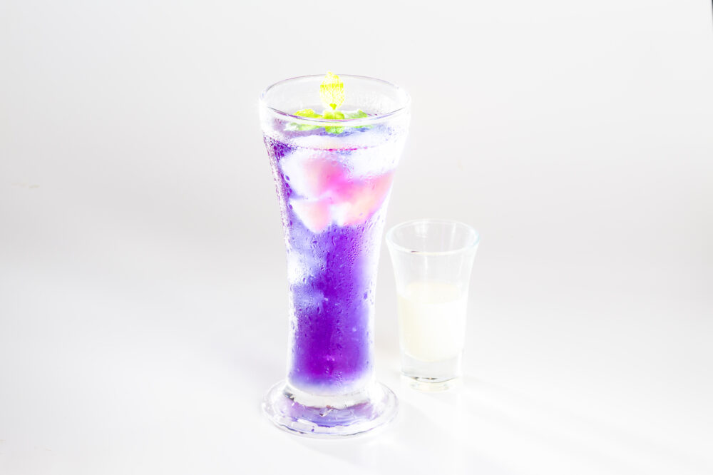 ・無農薬・無化学肥料栽培のバタフライピー汁添え、色の変化も楽しんでいただけます。※ホットorアイスのチョイスができます。