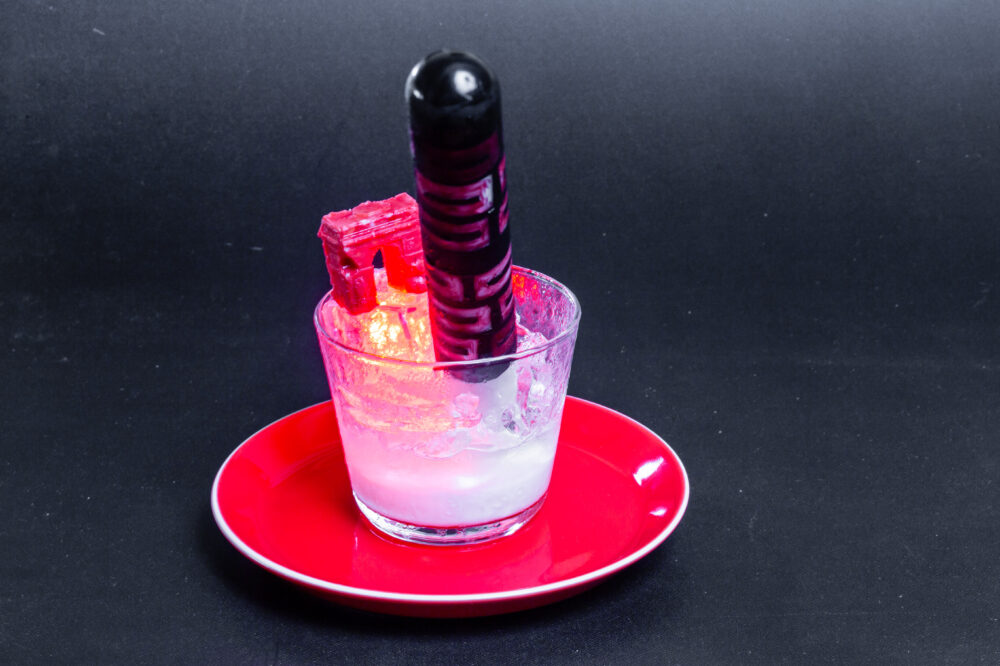 ・封印柱の試験管を抜いて貰うと白いカクテルが注がれます。お通しプレートとセットになっており、凱旋門のチョコレートを差し替えて頂き、お皿を取り替えて頂くと、コア化したパリが復旧します。