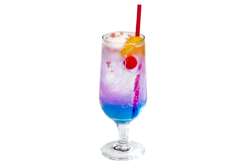 ・宇部産竹炭パウダー入りの黒寒天/鮮やかな緑のメロンゼリー/炭酸グレープジュースで初号機をイメージした、爽やかな炭酸ドリンクです!