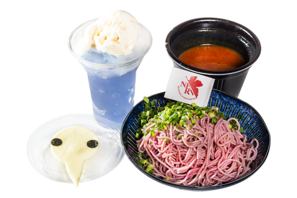 ・綾波レイをイメージした特製かき氷です。オーナー自家製のバタフライピーの自然な青色とふわふわな氷で綾波のクールでミステリアスな魅力を表現しています。
