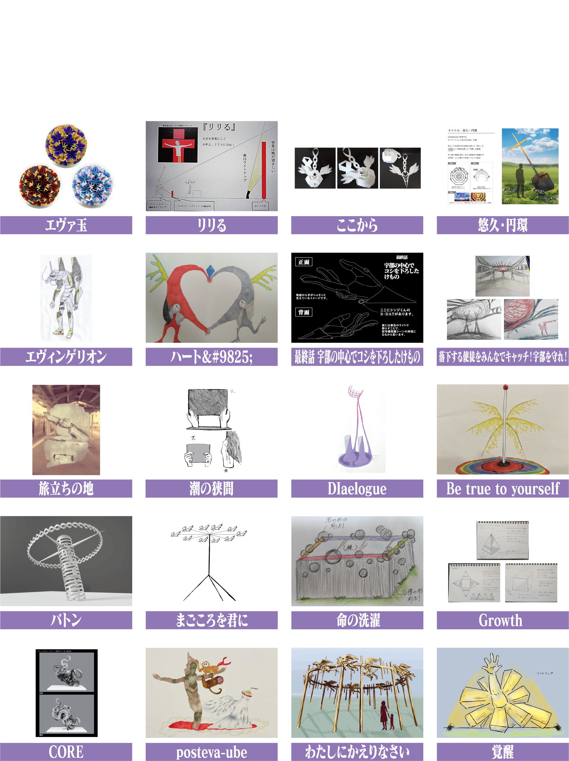 ※なお、本コンテストは彫刻そのものを募集する企画ではありません。幅広い層にファンを持つエヴァンゲリオン作品を自由な視点で捉えて、そこから表現されたデザイン案、イラスト、絵画、自作の立体物を撮影した画像データ、手描きの絵を撮影した画像データを彫刻デザイン案として募集する企画となります。
